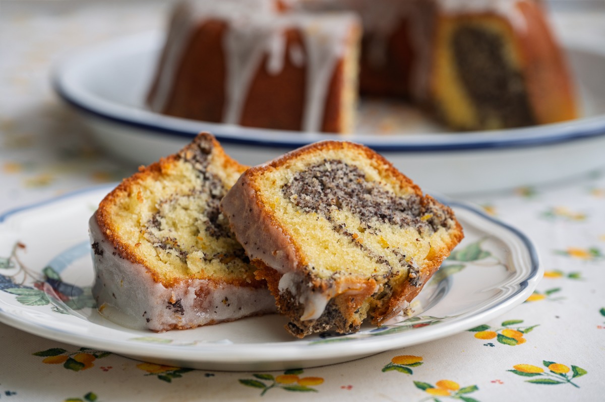 עוגה שיש פרג תפוז, בחושה נהדרת, עם ריח פרדסים וקריצה קונדסית מנוקדת טעימה כל כך.