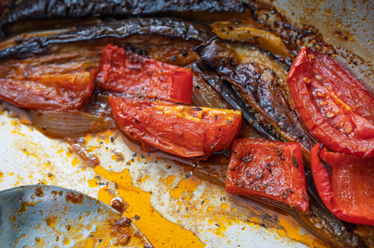 סלט נמס של חציל ופלפלים עם טחינת בלסמי