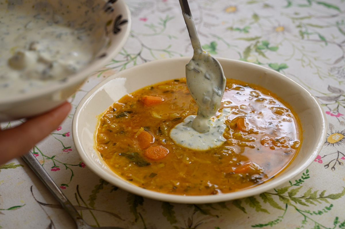 מרק עדשים כתומות עם יוגורט